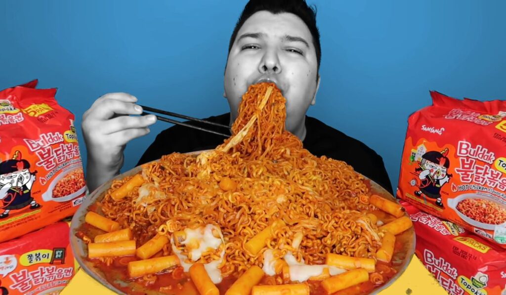 Uno de los vídeos más vistos de Nikocado Avocado, en el que prueba, con otra estrella del mukbang, unos tallarines “extremadamente picantes”.