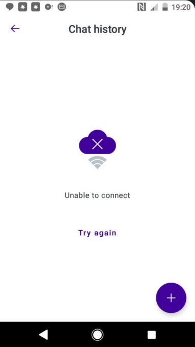 Watkins, por ejemplo, nos dijo que ya no puede acceder a su historial de consultas en la aplicación Babylon, proporcionando una captura de pantalla de una pantalla de error (a continuación) que dice que ahora ve cuando intenta acceder al historial de chat en la aplicación. Dijo que no sabe por qué ya no puede acceder a su información de uso histórico, pero dice que la estaba usando como referencia, para ayudar con más pruebas (y ya no puede).