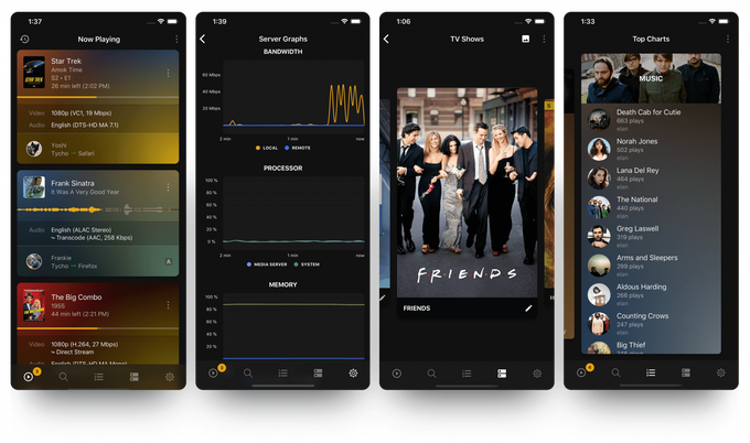 Esta aplicación para dispositivos móviles y tabletas le permite vigilar de cerca su servidor de medios personal, incluida una forma de ver todas las reproducciones, incluso en varios servidores, además de otras características administrativas.