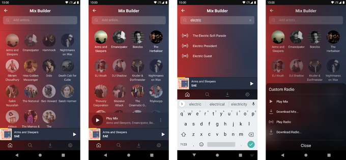 Plexamp 3.0 también presenta una función que le permite crear sus propias mezclas eligiendo un conjunto de artistas. Además, ofrece una lista más amplia de estaciones, admite la escucha fuera de línea y mejora su funcionalidad de búsqueda. El nuevo área de Búsquedas recientes, por ejemplo, guardará los resultados de búsqueda de todos los servidores, así como TIDAL y podcasts. Y una nueva función de Reproducciones recientes te muestra la música que elegiste reproducir conscientemente, de nuevo incluso en todos los servidores y TIDAL.