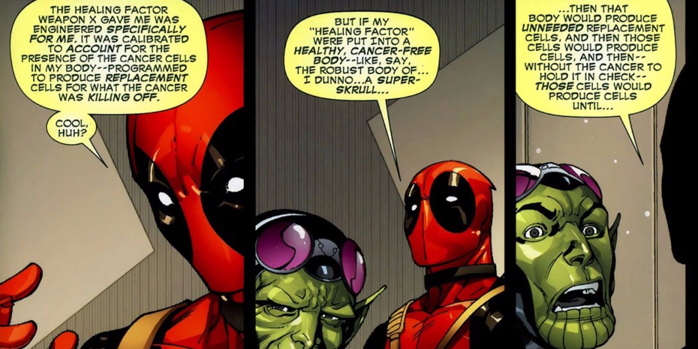 - El factor de curación de Deadpool fue diseñado específicamente para él y no cura las heridas, pero crea rápidamente células que su cáncer mata.