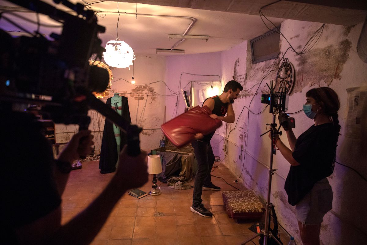 Silencio, cámaras y acción. Es una toma única y el set de rodaje está montado para rodar la escena. No puede haber ningún fallo. Entre ordenadores y trípodes, la tensión se apodera de la sala, mientras el actor Martín Spínola rompe cada objeto del salón, bañado en una luz cálida y tenue. Las lámparas y los cuadros empiezan a volar y a ser estampados contra la pared, fruto de una explosión de ira y desesperación de Martín Spínola, que interpreta El Fantasma de la sauna, la película musical dirigida por Luis Navarrete, inspirada en los clásicos de Hollywood, y que se distribuirá comercialmente durante el otoño.