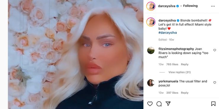Darcey Silva ha combinado la cirugía plástica extrema y los procedimientos cosméticos con filtros fotográficos excesivos, y muchos fanáticos piensan que la prometido de 90 días la franquicia regular ya ni siquiera parece real. Darcey recientemente compartió este video con sus seguidores y los fanáticos quedaron atónitos, pero no en el buen sentido. Entre sus muchas cirugías y el filtro agresivo del video, Darcey parece más una figura de cera que una persona.