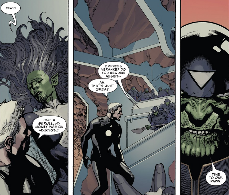 Sin embargo, en otro giro, se revela que T’challa es Veranke, la Emperatriz del Imperio Skrull. Veranke carece de los recursos para simplemente conquistar los asentamientos humanos, por lo que decide manipular la Guerra Civil de Superhéroes. Al descubrir a este Iron Man y al Capitán América, como era de esperar, entierran el hacha y logran detener a Veranke antes de que sea demasiado tarde. Guerra civil: ¡Zonas de guerra! es una representación realmente interesante del peor de los casos del Universo Marvel. Presenta muchos giros locos en los personajes que habría sido fascinante explorar con mayor detalle: Hawkeye tiene el simbionte Venom, Wolverine ahora es Hulk y Peter Parker se ha convertido en el nuevo Falcon. Su uso de los Skrulls también es una inclusión interesante. Finalmente, se reveló en la línea de tiempo principal de Marvel que los Skrulls estaban trabajando detrás de escena del evento Civil War original, y aquí son aún más efectivos.