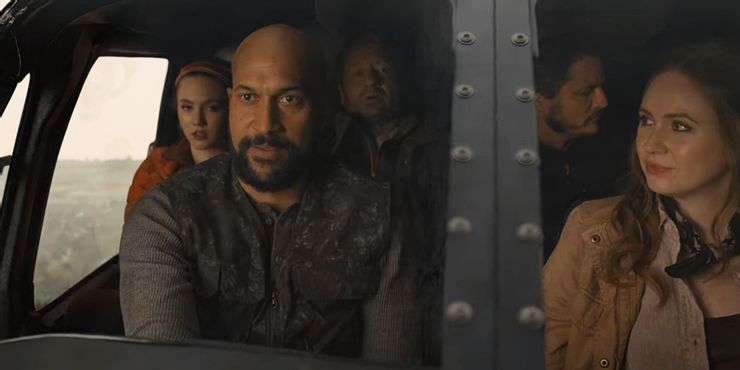 al final de La burbujael elenco de Acantilado bestias 6 intenta escapar del confinamiento carcelario de la burbuja de la producción, por lo que los actores se unen y “pelear” los directores y productores antes de abordar un helicóptero. Las lecciones rápidas de vuelo en helicóptero de Sean son útiles para los personajes de la película de Netflix de abril de 2022, mientras vuelan sobre el hotel con la película de Netflix enfocándose en el helicóptero que se aleja volando antes de que la película se quede en negro. Este es un paralelo directo al final de Parque jurásico, que vio a los personajes escapar de los peligrosos confines de la ubicación del título en el helicóptero, con la escena final que muestra el helicóptero volando sobre el océano y de regreso a un lugar seguro. Para La burbuja, Parque jurásicoLos dinosaurios asesinos de ‘s esencialmente equivalen al personal de estudio, seguridad y producción, y los científicos se correlacionan con Acantilado bestias 6El elenco.