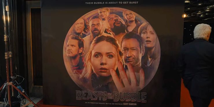 el final de La burbuja ve el elenco de Acantilado bestias 6 escapan por poco de la burbuja de producción, con Carol (Gillan), Dieter (actor Pedro Pascal), Krystal (Iris Apatow), Sean (Keegan-Michael Key) y Dustin (David Duchovny) fletando el helicóptero de la película lejos del hotel. Desde la producción de Acantilado bestias 6 no había terminado cuando el elenco abandonó sus contratos y escapó de su hotel de Londres, no parece que la secuela se haya completado nunca. En su lugar, el estudio usó las imágenes detrás de escena filmadas por Scott, Acantilado bestias 6‘s EPK, para crear un documental sobre la caótica realización de la película de la franquicia titulado Bestias de la burbuja. el final de La burbuja retoma dos años después de los sucesos del rodaje de Acantilado bestias 6, viendo al elenco, al equipo de producción y a los empleados del hotel caminar por la alfombra roja para el estreno del documental. Ya que La burbujaEl estudio de encontró más entusiasmo y éxito para el documental sobre cómo hacer la ficción. Acantilado bestias 6parece que la película de la franquicia real nunca se hizo.
