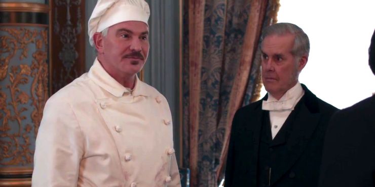 Sin embargo, cuando el presumido chef francés de reemplazo que contrató Bertha se emborrachó y no pudo cocinar para el baile, Borden inmediatamente intervino, preparó la cena que había planeado originalmente y “salvó el espectáculo”, según Jorge. Esto le valió la gratitud de Borden the Russells y lo contrataron nuevamente como el chef de la casa, a pesar de las reservas de Bertha sobre su “Medio Oeste” orígenes. La historia de Monsieur Baudin/Josh Borden fue ciertamente extraña pero divertida. Lo mejor de todo es que crea un desafío para los Russell, quienes ahora tienen que admitir que tienen un chef estadounidense entrenado en Francia justo cuando ingresaron a la élite de la alta sociedad de Nueva York.