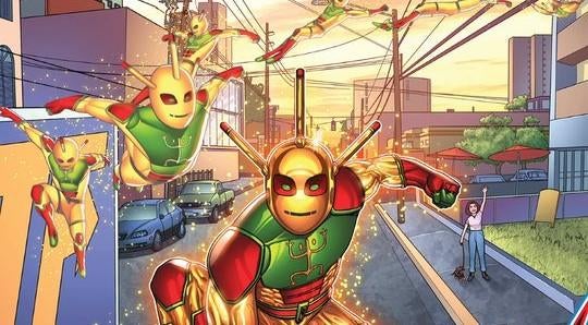 “Mientras que los fanáticos de las principales editoriales y estudios debaten sobre la diversidad en el género de los superhéroes, he decidido mantenerme proactivo y desarrollar mi propio universo con La Borinqueña como personaje fundador”, dijo Miranda-Rodríguez a ComicBook.com. “Ahora, con su equipo de superhéroes obteniendo su propia línea de figuras de acción con Boss Fight Studio este otoño, nuestro estudio Somos Arte es el único editor que crea superhéroes que orgánicamente son diversos porque provienen de Puerto Rico y los Estados Unidos. Nuestro primer spin-off, Oro El Coqui Dorado, es una carta de amor al pueblo de Loíza, Puerto Rico. Este pueblo fue fundado por los puertorriqueños descendientes de africanos liberados, conocidos como Libertos. También es un saludo a la próspera escena del baloncesto aquí en el archipiélago que Recientemente comenzó a generar rumores cuando la megaestrella Bad Bunny se convirtió en copropietaria del equipo de baloncesto Loa Cangrejeros. En una nota al margen, co-creé Oro con mi hijo que ahora tiene 7 años durante la pandemia, inspirado en un vejigante, una máscara de carnaval de Loíza. que nos fue entregado como regalo de uno de los ganadores de nuestros premios La Borinqueña Grant Awards. Somos la única serie de superhéroes dedicada al trabajo filantrópico en Puerto Rico hasta el día de hoy y ya hemos recaudado y donado $200,000”.