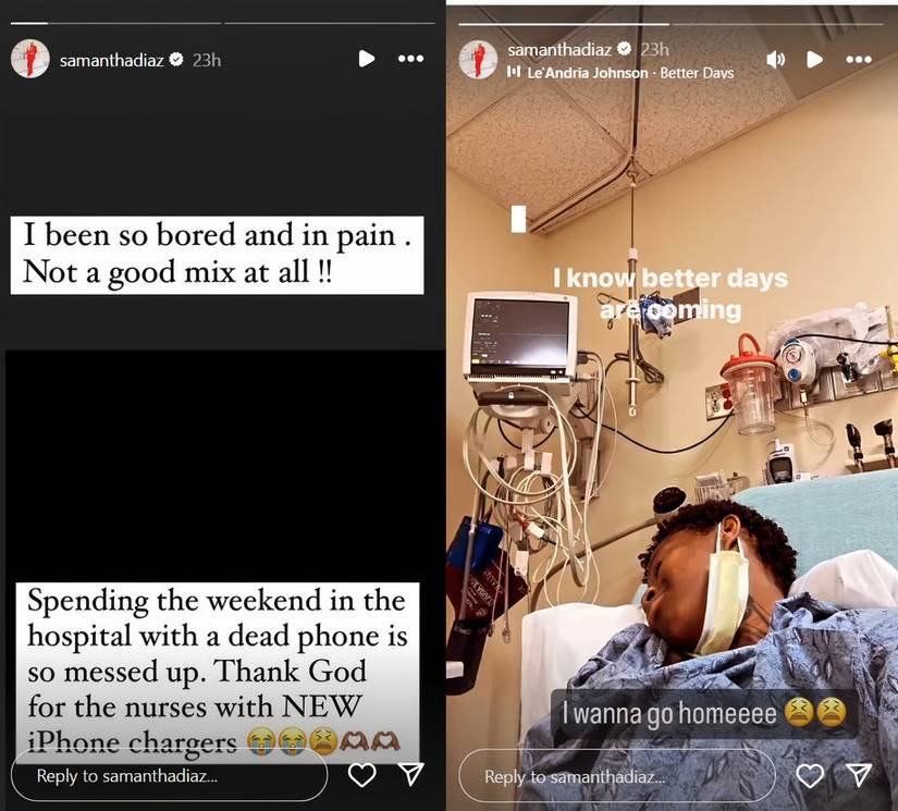 La siguiente historia de Instagram mostró una foto de Just Sam descansando en una cama de hospital con la leyenda: “Solo quiero ir a casa“. La historia de Instagram de Sam incluyó audio de la canción “Better Days” de Le’Andria Johnson, que tiene una letra muy apropiada para lo que Just Sam ha estado experimentando., incluidos mensajes de esperanza de que vendrán días mejores después de pasar por tiempos difíciles. Al momento de escribir este artículo, no ha habido más actualizaciones sobre la salud de Just Sam o por qué fueron al hospital para empezar.