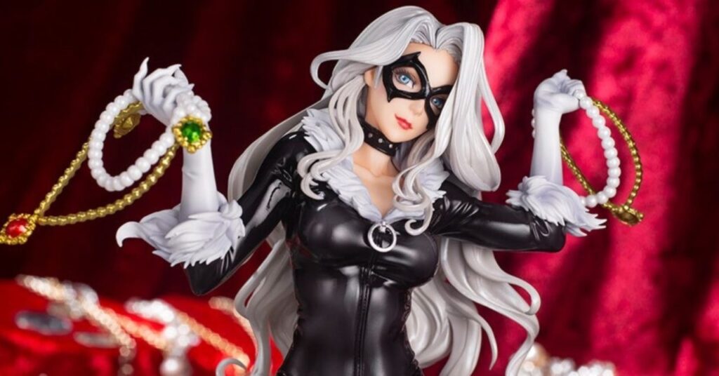 “¡El ladrón que incluso ha robado el corazón de Spiderman, Black Cat, regresa a la serie BISHOUJO por primera vez en 9 años!” La descripción oficial de la estatua dice. “Black Cat renace en una nueva ilustración estilizada por la amada Shunya Yamashita y traída a la vida con asombrosos detalles gracias a la artesanía del escultor ke (comaccow). Black Cat llega con su hermoso cabello plateado pintado en perla y con un traje que ha sido pintado con una capa brillante. Extraordinariamente grandes diamantes y joyas pintadas con una capa especial de pulido se encuentran a sus pies, dando un acabado simple pero vibrante “.
