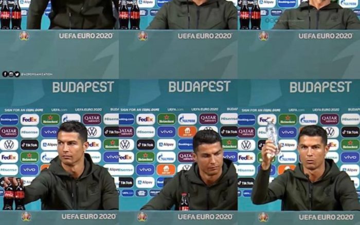 El astro portugués, bien conocido por su estricta disciplina tanto física como alimenticia, recomendó beber agua en lugar de refresco, luego de retirar dos botellas de la gaseosa estadounidense del lugar que le fue asignado para dar una conferencia de prensa, previo al encuentro de este martes ante Hungría en Budapest, correspondiente al Grupo F de la Eurocopa 2020.