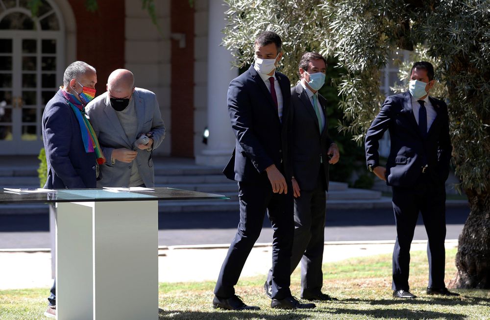 A la izquierda, el secretario general de UGT, Pepe Álvarez, habla con el de CC OO, Unai Sordo. A continuación, el presidente del Gobierno, Pedro Sánchez, con los líderes de CEOE, Antonio Garamendi, y Cepyme, Gerardo Cuerva.Chema Moya / EFEA los sindicatos mayoritarios, CC OO y UGT, no les acaban de gustar todas las noticias que llegan de Bruselas, ni los cambios que estas pueden provocar en la agenda del Gobierno. En concreto, lo que rechazan es que se condicione la llegada de fondos comunitarios para la reconstrucción a la derogación de la reforma laboral de 2012, prevista en el pacto de Gobierno de PSOE y Unidas Podemos, y a una reforma que recorte pensiones. “El Gobierno no puede ceder a ese chantaje”, apunta el secretario general de CC OO, Unai Sordo, cuando habla de las exigencias que se conocen por parte de los países llamados frugales. Su tiro, concretamente, se centra en Holanda. “Para nada tiene que ceder”, ataja Pepe Álvarez, líder de UGT, preguntado directamente por esto.Los sindicatos reclaman que en septiembre, a la vuelta de las vacaciones, en la agenda del diálogo social se retome la negociación para derogar partes de la reforma laboral que se venían hablando antes de que explotara la pandemia. Los primeros que figuraban eran cambios en la negociación colectiva y subcontratación. “No deberíamos tardar mucho en avanzar en eso”, subraya Sordo al teléfono, temeroso de que con la regulación actual cuando llegue el otoño permita una “devaluación salarial desordenada”. “En septiembre hay que retomarlo y a mí nadie me ha dicho lo contrario”, añade aludiendo a las conversaciones que tiene habitualmente con los diversos ministros del Ejecutivo.Unai Sordo, secretario general de CC OO. En vídeo, su reacción al pacto de la Unión Europea.(Vídeo: Europa Press)“Nosotros vamos a ir a septiembre con este tema”, apunta Álvarez, en conversación con este diario. “Eso es lo que dicen los acuerdos firmados”, abunda, en clara referencia al pacto por el empleo suscrito en los jardines de La Moncloa hace unas semanas, en los que se habla de “modernizar” la legislación laboral y recuperar las mesas de diálogo que detuvo el estallido de la crisis del coronavirus.En el Gabinete de Sánchez esta posición tiene partidarios. A la cabeza de ellos está la ministra de Trabajo, Yolanda Díaz. Pero también detractores, la vicepresidenta tercera y ministra de Economía, Nadia Calviño. La llegada de mensajes de Bruselas favorables a aparcar los cambios en la reforma laboral es una constante en el debate político español. Pero a UGT y CC OO lo que les preocupa, aunque no lo digan abiertamente, es que ahora se refuerce la posición de la vicepresidenta.La Moncloa no renuncia a derogar la reforma laboral del PP, pero fuentes del Ejecutivo admiten ya que esos planes podrían retrasarse más allá del otoño, según ha avanzado este lunes EL PAÍS, ante las reticencias de Bruselas a las contrarreformas de todo tipo. Para los sindicalistas españoles no debe haber vinculación entre la llegada de fondos y reformas en el sentido que plantean países como Holanda, con un endurecimiento de la legislación laboral y recortes en pensiones.Sordo exige a Sánchez que no ceda si se están planteando estas condiciones. “Esto son elementos de distorsión política. Supongo que Mark Rutte [primer ministro holandés] lanza este mensaje en clave interna”, señala. La derogación por partes de la reforma laboral de 2012 hasta llegar a la elaboración de un nuevo Estatuto de los Trabajadores es uno de los compromisos que alcanzaron el PSOE y Unidas Podemos en su pacto de Gobierno. En el partido que lidera el también vicepresidente Pablo Iglesias se agarran a ese acuerdo y descartan que el debate sobre la reforma laboral esté sobre la mesa en la negociación de los fondos europeos.Devaluación salarialLa rebaja de sueldos —la denominada devaluación interna, que se activó tras el rescate de España en 2012— es uno de los temores de los sindicatos si en otoño siguen vigentes los puntos de la reforma laboral sobre los que ellos reivindican cambios más inmediatos. Sordo, consciente de que a la vuelta del verano la situación puede ser más cruda, señala que si no se tocan elementos de la negociación colectiva aprobados en 2012 puede llegar una “devaluación salarial desordenada”, en referencia a reducciones unilaterales de sueldos por parte de los empresarios sin pasar por la negociación. CC OO anticipa “problemas” con los sindicatos si esta situación no se corrige pronto.La derogación de la reforma laboral fue una reivindicación sindical desde el mismo momento de su aprobación. El Gobierno socialista no logró el apoyo necesario para sacar adelante sus propuestas al final de la pasada legislatura, aunque tampoco hubo consenso en el propio Ejecutivo: a un lado estaba Magdalena Valerio, entonces ministra de Trabajo, partidaria de los cambios; y en el otro de nuevo Calviño, que hace unas semanas puso el grito en el cielo cuando el PSOE y Podemos pactaron durante unas horas con Bildu la derogación completa de la reforma laboral.