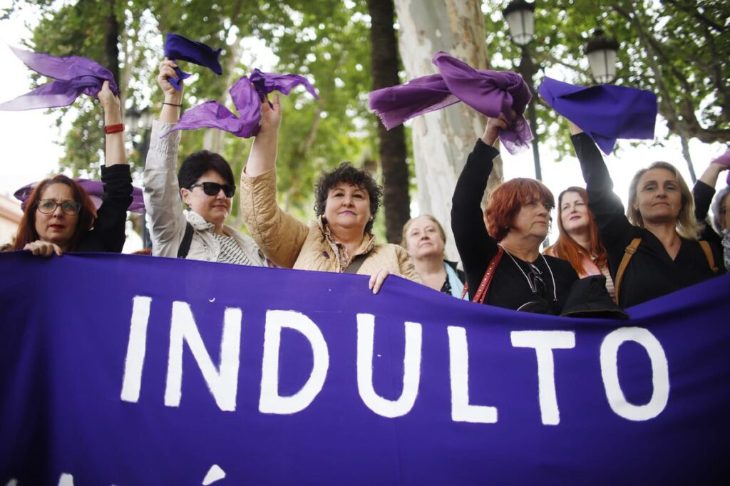 María Salmerón, en el centro con un abrigo beige, en una concentración en Sevilla para pedir su indulto.Paco Puentes