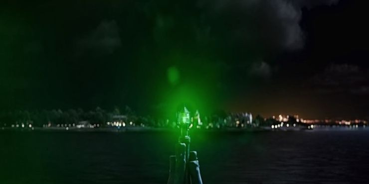 La secuencia final de la película está cargada de tensión dramática. Nick Carraway visualiza al Gatsby muerto imaginando cómo habría sido la primera vez que Gatsby vio la luz verde al final del muelle de Daisy.