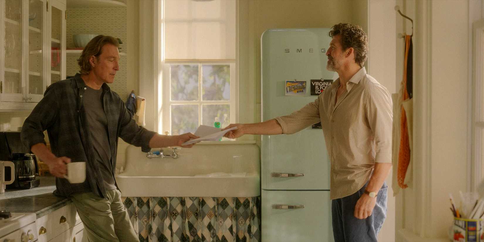 Aidan se distancia para arreglar la puerta, despegando para reemplazar el vidrio ondulado del arco iris de Carrie, haciendo que las cosas sean aún más extrañas. Cuando regresa, explica que no puede reparar la puerta, luego revela que su culpa es algo mucho más profundo. Aidan admite que se acostó con su ex esposa, Kathy (Rosemarie DeWitt), estimulando a la pareja para reevaluar sus términos románticos.