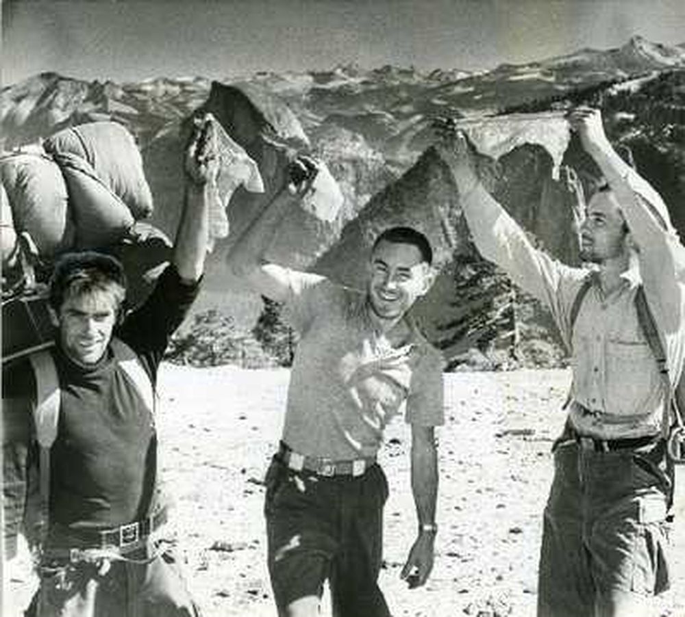 El 1 de noviembre de 1958, Harding, Wayne Merry y George Whitmore se engancharon a las cuerdas fijadas meses atrás dispuestos a salir por arriba costase lo que costase. Costó 11 días de esfuerzos terribles, de incertidumbre e inteligencia solo para dar con el trazado adecuado. “No sabíamos si era posible, y esa era la clave porque nadie lo sabía”, relataría Whitmore. El viento había dañado muchas de las cuerdas fijas, que tuvieron que recolocar, y las ratas habían destrozado los sacos de dormir que habían dejado como depósito en las repisas de la pared. El carácter discreto y servicial de Whitmore resultó el contrapunto perfecto al histriónico y faltón Harding. Mientras este último lideraba la escalada, Whitmore gestionaba la tremenda intendencia, que le obligaba a izar enormes petates de material. Adelantándose a la tarea, Whitmore diseñó y fabricó pitones de roca de aluminio para ahorrar peso y colocarlos en las anchas fisuras del final de la ruta.