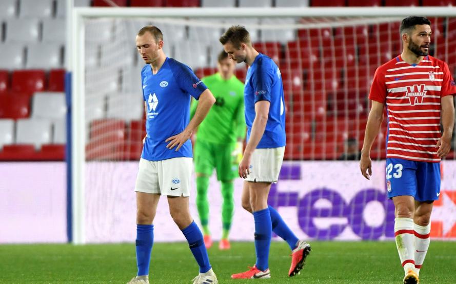 Comenzó bien el Granada, volcando buena parte de su fútbol por la banda derecha, donde Kenedy, con su constante movilidad, creaba el desconcierto en la defensa del equipo noruego. Fue precisamente el extremo brasileño el que dispuso de las primeras ocasiones, tanto como protagonista principal o secundario. Así, en el minuto 6 ya puso a prueba a Linde con un chut y acto seguido, en un saque de falta lateral, su centro dejó solo ante el meta al central argentino Nehuén Perez, que no acertó a rematar entre los tres palos.