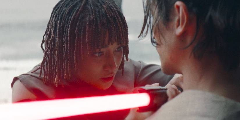 Como se vio en El acólito Episodio 6, Mae (Amandla Stenberg) abandona el planeta Khofar con el Maestro Sol (Lee Jung-jae), disfrazada de su hermana gemela Osha. Mientras tanto, Osha ha sido llevada a un planeta desconocido por Qimir, quien aparentemente quiere convertirla en su nueva acólita. Sin embargo, Este nuevo mundo en particular se parece mucho Los últimos Jedi Ahch-Ael sitio del primer Templo Jedi y el hogar final del exiliado Luke Skywalker. Sin embargo, también podría estar conectado a un mundo clave de Legends al mismo tiempo.