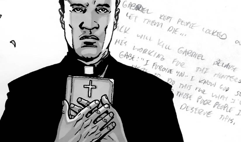 En esencia, Los muertos vivientes era una historia sobre la humanidad que se enfrenta a una amenaza existencial a escala global. Eso significaba que todo lo que los personajes creían previamente (sobre Dios, sobre la vida después de la muerte, sobre los frágiles vínculos que mantienen unida a la civilización) tenía que ser revisado como parte de la historia. Robert Kirkman utilizó personajes como el Padre Gabriel para encarnar la pregunta de cómo la fe religiosa se vería desafiada por un brote de zombis, una pregunta filosófica que ha estado presente en el género zombi desde sus inicios.