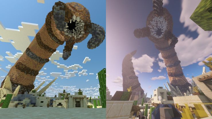 Un fanático dedicado construyó un gusano de arena gigante de Minecraft que hará que los jugadores no quieran volver a visitar el desierto por temor a la aniquilación.