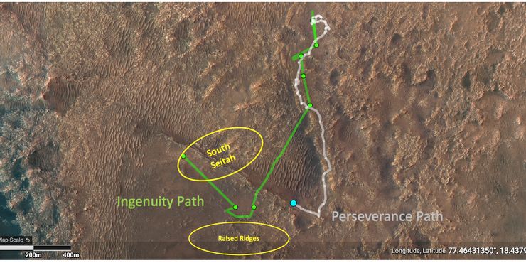 El ingenio sigue impresionando. Con su duodécimo vuelo en Marte, el helicóptero maniobró un terreno desafiante para ayudar a Perseverance con futuras misiones.