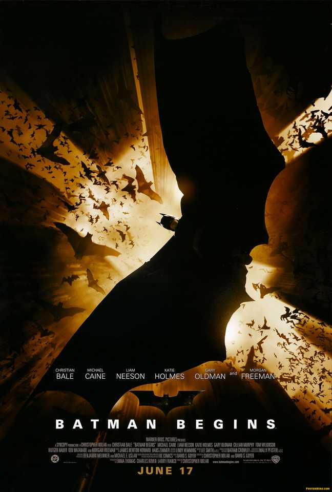 La versión de Christopher Nolan de la historia del origen de Batman ve a Christian Bale asumir el papel del Caped Crusader. Batman Begins sigue al joven Bruce Wayne quien, aturdido por el asesinato de sus padres ricos, decide convertirse en justiciero para salvar Gotham City. Esto lo enfrenta a la misteriosa Liga de las Sombras, una organización que intenta destruir Gotham con la ayuda del villano Espantapájaros y su poderosa toxina del miedo.