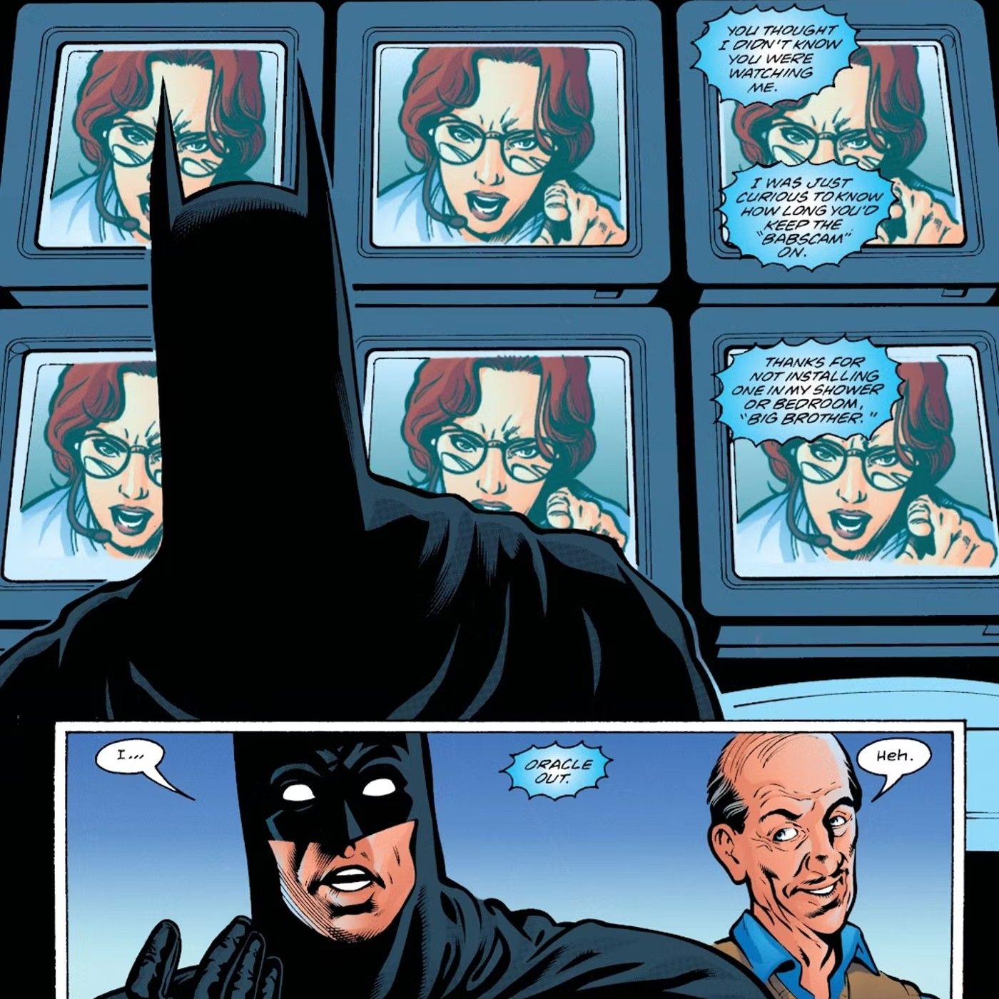 Es posible que Barbara Gordon haya comenzado su carrera de vigilante como Batgirl, un apodo al que regresa de vez en cuando, pero ha tenido su mayor impacto detrás de escena como Oracle. En ese papel, ella se ha convertido uno de los expertos en tecnología más hábiles de DC, que se destaca en piratería, vigilancia y coordinación. Incluso Batman, a pesar de toda su planificación y su asombrosa habilidad para operar en secreto, no pudo adelantarse a ella, y uno de sus únicos intentos de vigilarla terminó con Oracle llamándolo a través de su cámara en 1999. Aves de presa #6.