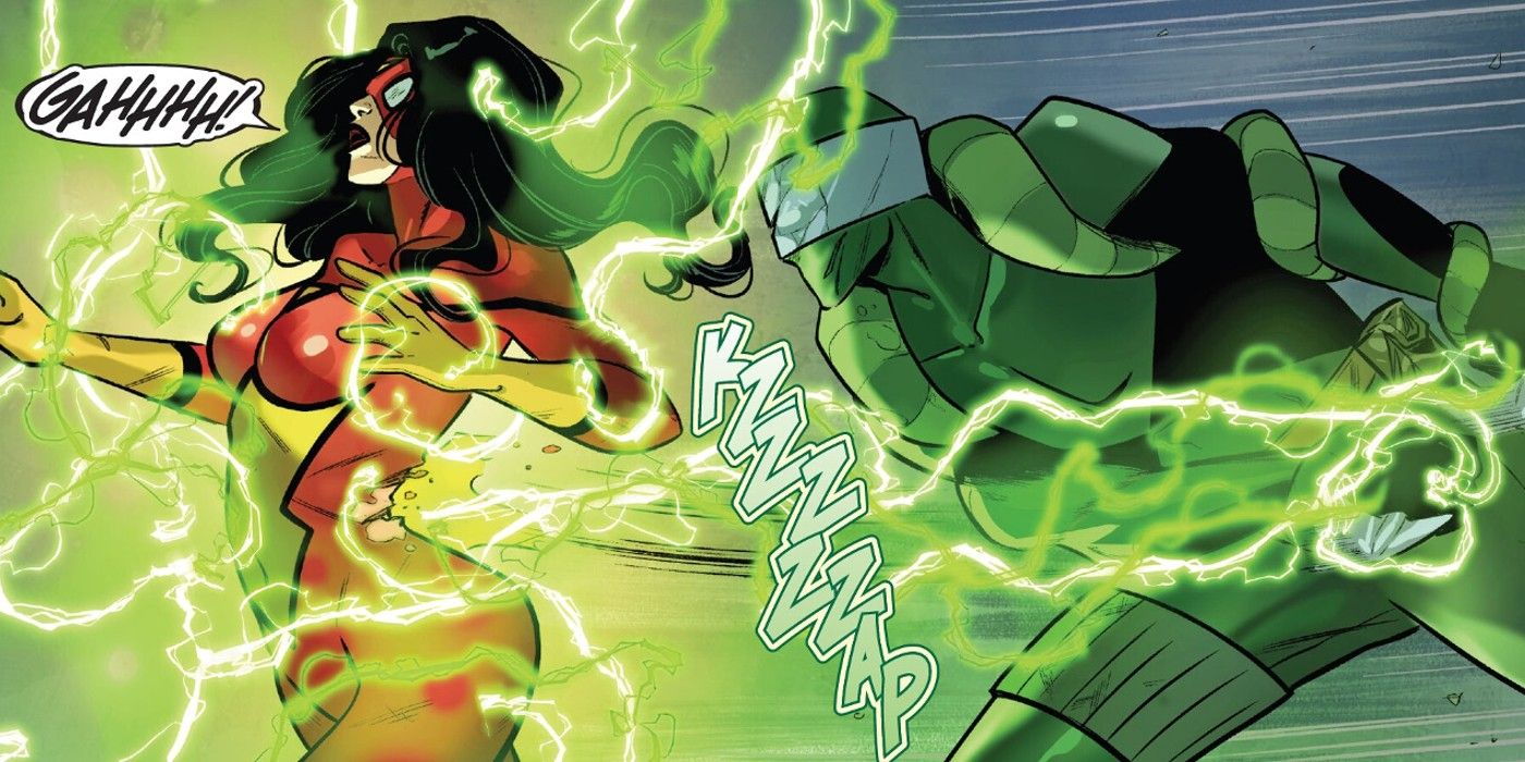 - Spider-Woman #3 revela la trágica verdad de la desaparición de Gerry: él es una versión mayor del hijo de Jessica, convertido en la villana Green Mamba de Hydra.