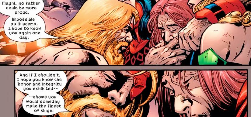 En el último número de Dan Jurgens, Thor (Vol.2) #79, Thor se da cuenta de su arrogancia cuando Magni es herido de muerte, lo que lleva a Thor a retroceder en el tiempo e impedir la existencia misma de su propia línea de tiempo. Excepto que en el Multiverso Marvel tradicional, cambiar el pasado crea una línea de tiempo ramificada, lo que significa que probablemente haya un mundo donde el Reinado nunca terminó. La primera gran pregunta de los lectores es si Magni ha sido rescatado del momento de su muerte en Thor #79, o si es de un mundo que continuó, uno en el que tal vez vivió.