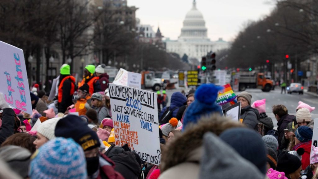 Siendo 2020 un año electoral, en la manifestación de este año había numerosos carteles exigiendo que una mujer sea elegida como presidenta, pero los pósteres que apoyaban a un candidato masculino en concreto, como los demócratas Bernie Sanders, Andrew Yang o Pete Buttigieg, eran más numerosos que los que respaldaban específicamente a aspirantes mujeres, como la también progresista Elizabeth Warren.