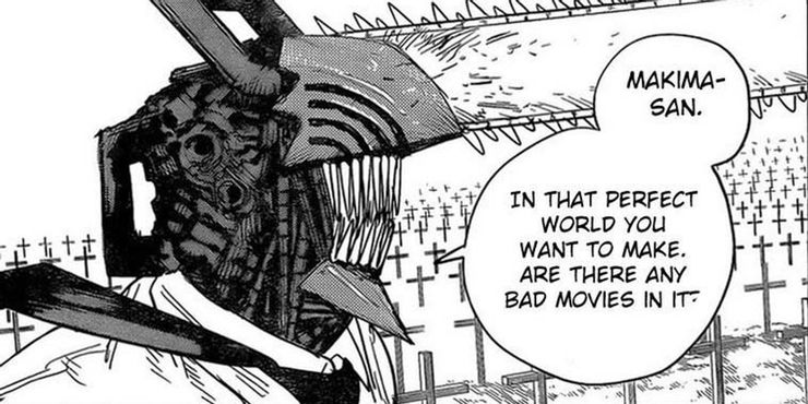 Makima buscó aprovechar el poder real de Chainsaw Man para eliminar la existencia y la memoria de los demonios que devora en un esfuerzo por librar al mundo de todo lo malo. A pesar de lo mucho que lo maltrató, Denji nunca se atrevió a matar a una mujer a la que había dedicado la mayor parte de su mandato como cazador de demonios a complacer para que ella pudiera concederle cualquier deseo. Cuando finalmente se enfrenta a ella en el capítulo 93, presenta una pregunta aparentemente extraña: “En ese mundo perfecto que quieres hacer. ¿Tiene alguna mala película?“Es cuando ella responde de manera negativa lo que aparentemente lo convence de que su único curso de acción lógico es matarla. Pero un capítulo anterior revela que esta no era solo una pregunta al azar.