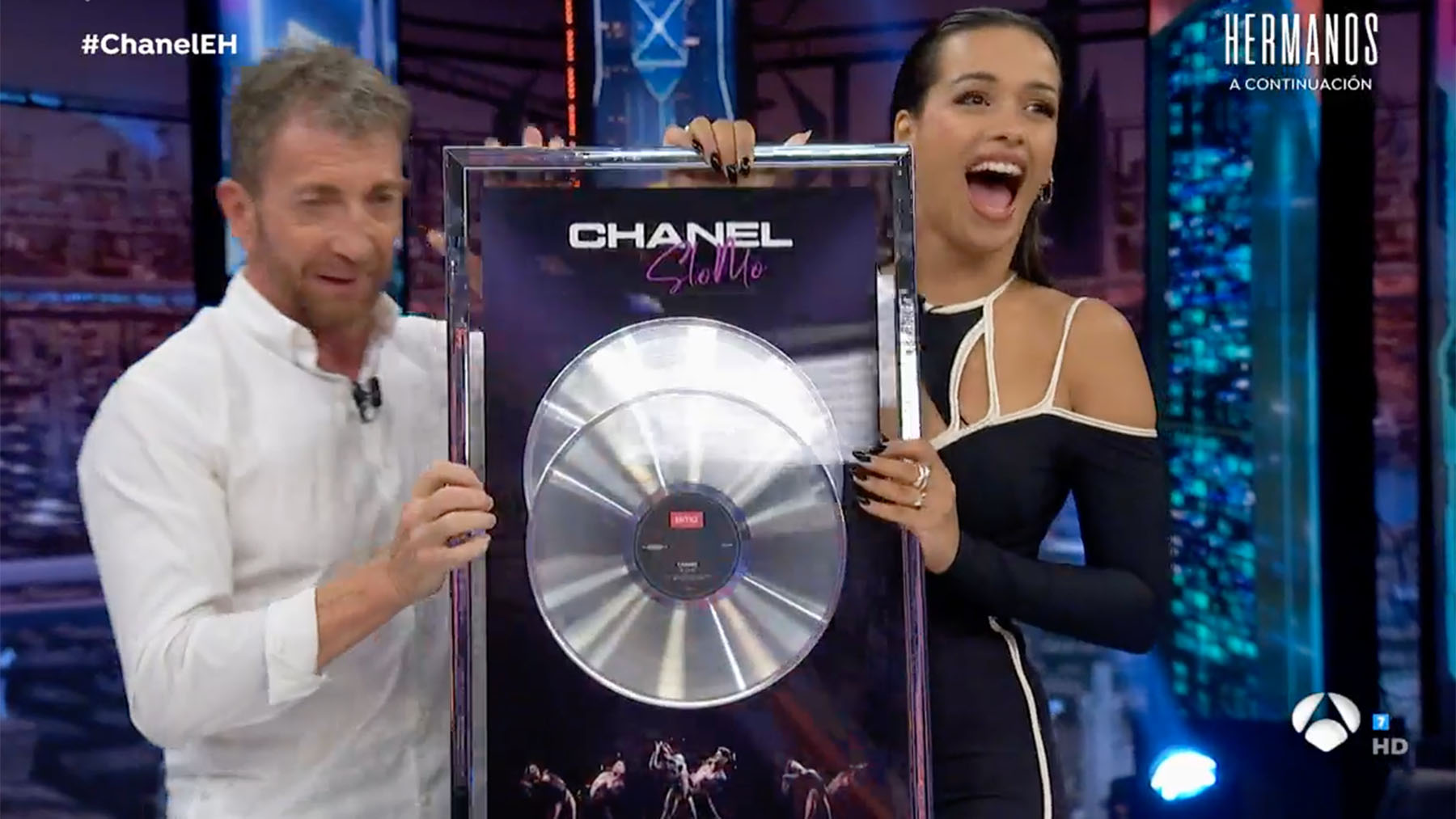 Llegaba el momento de comenzar el programa, y a ritmo de SloMo, Chanel irrumpía con la mayor energía en el plató de Antena 3 para llevarse la ovación del público en cuestión de instantes, y cómo no, la admiración del maestro de ceremonias de El Hormiguero. Una cita muy especial que ha contado con un regalo para la invitada: su doble disco de platino por el éxito que hizo que España alcanzara al máximo estrellato en Eurovisión. Un regalo que ha llenado de felicidad a la protagonista, que se ha mostrado muy agradecida antes de desvelar que sigue trabajando en su música y en crecer como artista, aunque el mundo de la fama aún le resulte un tanto extraño.