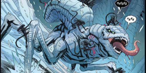 Esta guerra, que fue completamente crónica en Alienígena 2023 #1 – Terminó con los xenomorfos, los xenomorfos blancos y los alienígenas desconocidos sobrevivientes que entran en estasis. Es decir, hasta los eventos de Alien Vol. 3, cuando la actividad humana en este mundo despierta las hordas de los xenomorfos y sus variantes blancas. Sin embargo, el horror cósmico de los monstruos dormidos en mundos lejanos no alcanzó su punto máximo hasta la introducción de Winterbeast, ya que realmente encapsuló el terror de una gran antigua en el sentido más amoroso.