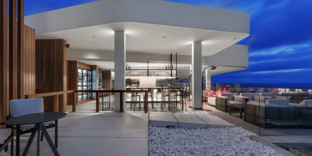 Diseñado por el reconocido arquitecto tinerfeño Leonardo Omar, el complejo tiene forma de barco y se inspira en su interior en los corales marinos de la isla. El diseño del hotel no sólo aplica a sus instalaciones, sino también a su oferta de experiencias a medida para hacer de las vacaciones algo inolvidable.