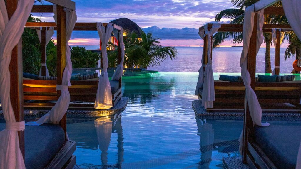 Cuenta con dos piscinas en el exterior, una de ellas olímpica y climatizada, y una tercera de agua salada y cubierta situada dentro del spa de 2.200 metros cuadrados (con cabinas para tratamientos, zonas termales y gimnasio). El cuarto espejo de agua es infinito y está ubicado en el ‘beach club’, ya que la playa se encuentra a solo 1,5 kilómetros de distancia.