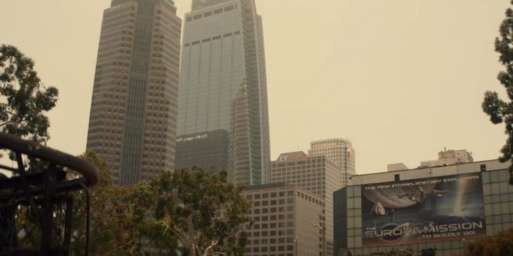 El episodio 3 arroja una pista aún más grande: la misión Europa. Cuando Seven alcanza a Raffi en las calles de Los Ángeles, una gran valla publicitaria detrás de ella dice: “Los nuevos exploradores interplanetarios – LA MISIÓN DE EUROPA – ¡Audazmente ir!Ignorando la desvergonzada referencia al eslogan, la ubicación de la cartelera denota una gran importancia para esta primera misión espacial terrestre, y Raffi incluso describe el proyecto como un “telón de fondo de esperanza”. Viaje a las estrellas: PicardLas fotos del set y, lo más revelador de todo, el tráiler de la temporada 2 muestra a Q usando una chaqueta con el logo de Europa estampado en el bolsillo del pecho…