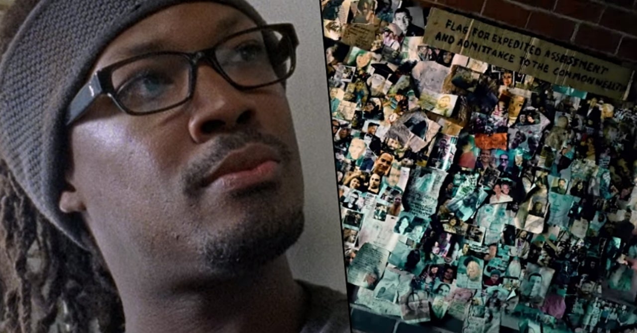 Cuando Eugene (Josh McDermitt), Ezekiel (Khary Payton), Yumiko (Eleanor Matsuura) y la Princesa (Paola Lazaro) escapan de un puesto avanzado de la Commonwealth en “Acheron: Parte 1”, Princess señala la foto de Yumiko en el Muro de los Perdidos: un tablero publicado con imágenes de personas desaparecidas. Entre los cientos de fotos y volantes de seres queridos perdidos hace mucho tiempo se encuentra un póster dibujado en busca de un Heath de Louisville: