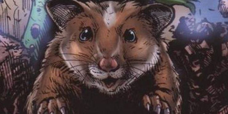 El nuevo recluta peludo de The Boys trae el humor asqueroso característico de la franquicia a una escena de acción por lo demás seria. La imagen de Jamie embistiendo violentamente a los soldados cercanos en una lluvia de sangre es tan sangrienta como estridentemente ridícula. Sin embargo, lejos de ser un recién llegado, el pequeño Jamie tiene historia en el original de Garth Ennis. Los chicos cómics, y no te sorprenderá saber que es incluso más asqueroso que el momento de “muerte por un hámster enojado” en Los chicos temporada 3. La primera misión de Comic Hughie se convierte en una pelea masiva contra Teenage Kix, que termina cuando el nuevo novato de Boys mata accidentalmente a Blarney Cock. Mientras su cadáver yace en la calle, un hámster vivo (no con poderes, lamentablemente) sale del trasero del super, una sombría torcedura sexual que aparentemente a Blarney Cock le gustaba disfrutar. Hughie siente pena por el animal liberado y lo adopta como mascota. , nombrándolo “Jamie”.
