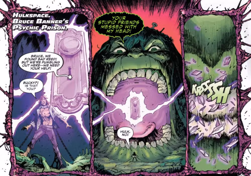 En hoy Nuevos Avengers #5 – De Sam Humphries, Tiago Palma, Fabi Marques y Joe Sabino – Los nuevos Vengadores convocan a Hulk para ayudar en su lucha contra el malvado clon del malvado de Reed Richards, Sr. Ouroboros. Sin embargo, el gigante de Jade no se siente exactamente cooperativo. Cuando Clea Strange intenta acceder a la mente de Hulk y persuadir a Bruce Banner para que ayude, El Hulk rompe su hechizo con los dientes.