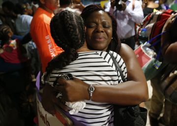 Jasmine Farrinton abraza a Roshane Eyma tras ser rescatada en las Islas Ábaco, en la Bahamas. En vídeo, las desastrosas consecuencias de Dorian. J. Jiménez GETTY | Vídeo: Atlas