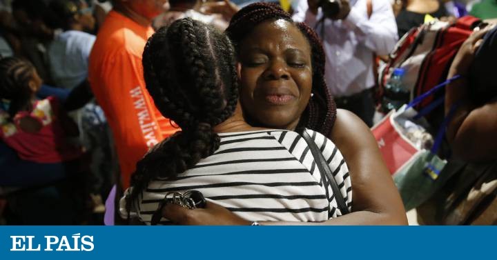 Jasmine Farrinton abraza a Roshane Eyma tras ser rescatada en las Islas Ábaco, en la Bahamas. En vídeo, las desastrosas consecuencias de Dorian. J. Jiménez GETTY | Vídeo: Atlas