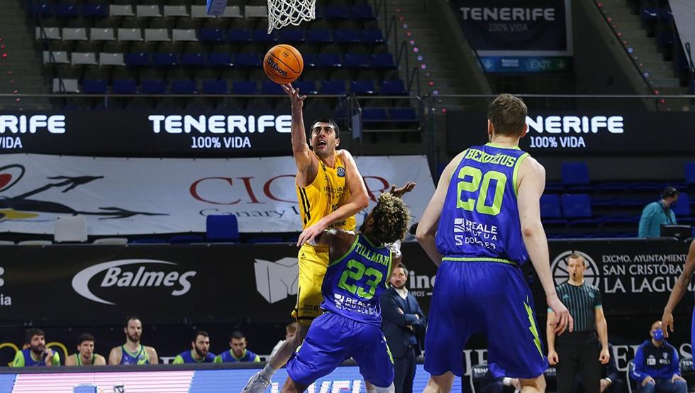 Reacción importante del Iberostar Tenerife en los dos últimos minutos para alcanzar una diferencia al descanso de siete puntos (50-43).