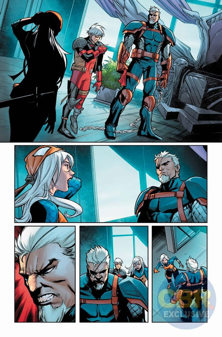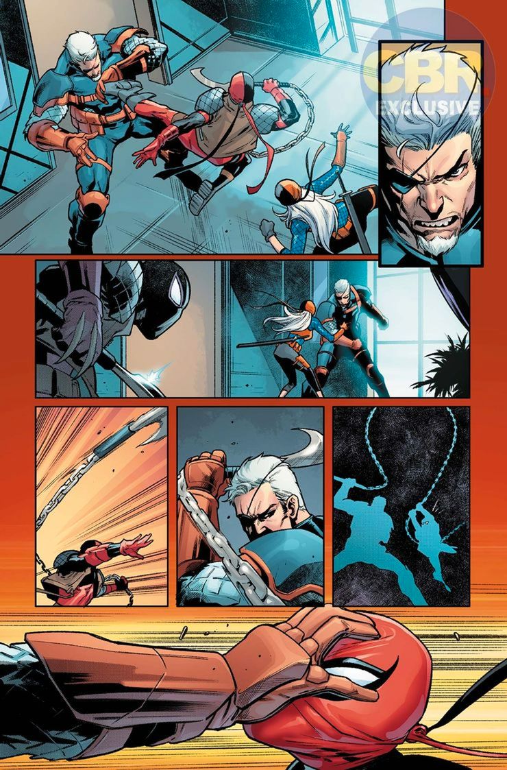 golpe de muerte inc. #7 -escrito por Joshua Williamson con arte de Stephen Segovia- sigue el descenso continuo de Slade para convertirse en el “Rey de los Supervillanos” después de traicionar a Black Canary y establecer oficialmente que ya no es un antihéroe, sino un supervillano diabólico en toda regla. Las imágenes de vista previa sin texto que se ven a continuación, compartidas exclusivamente con CBR, muestran a Ravager y Respawn asaltando la base de Deathstroke y atacándolo brutalmente sin dudarlo. Mientras los dos jóvenes dan una buena pelea, Slade los golpea rápidamente, quien arranca la máscara de tela de la cara de Respawn para finalmente revelar cómo se ve… y parece mucho como el propio Deathstroke. Esto lleva a una confrontación verbal entre Rose y su padre con Slade luciendo visiblemente molesto y frustrado, lo que no sorprende dado que las interacciones con y sobre sus hijos son a menudo una de sus únicas debilidades como mercenario despiadado.