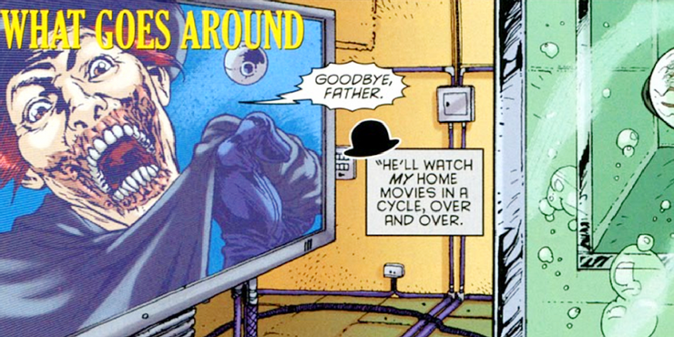batman y petirrojo #26 de David Hine, Greg Tocchini y Andrei Bressan concluye con el Hombre que ríe vengándose de su viejo. Adoptando la afición de su padre por convertir a las personas en obras de arte, Norman deconstruye a su víctima, almacenando sus órganos aún conectados en varios tanques programados para mantenerlo con vida el mayor tiempo posible en una instalación oculta que ni siquiera el detective más grande del mundo encontrará jamás. Mientras estas máquinas sigan funcionando, probablemente mucho después de las respectivas muertes de Batman y el Guasón, el padre de Norman se ve obligado a ver una serie interminable de películas caseras de la familia, reflexionando sobre las formas en que maltrató a su hijo.