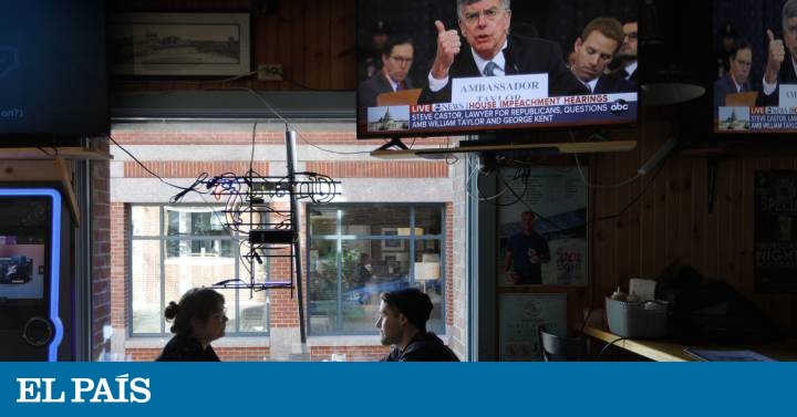Ellie Shah, de 25 años, se mudó de California a Baltimore cuando entró a la escuela de medicina en la Universidad George Mason. Hace unos meses una amiga le comentó que cuando había una comparecencia gorda en el Congreso, los bares en Washington abrían a primera hora de la mañana y ofrecían promociones especiales. “Me prometí hacerlo la próxima vez”, comenta. Así que viajó una hora y media para verlo con sus propios ojos en el Union Pub. Hannah Olsen, de 26, oriunda de Miami, también se estrenó con el inicio del proceso de impeachment contra Trump. Para ella este es “un caso claro para destituir a un presidente”. “Es muy positivo que lo transmitan en televisión porque mucha gente tiene otros problemas y no tiene tiempo para seguir todo este embrollo. Si lo transmites le das una importancia mayor y le permites a la gente que se entere”, sostiene, mientras el rótulo de la CNN afirma que el diplomático estadounidense Gordon Sondland dijo que a Trump le interesaban más las investigaciones contra Hunter Biden, hijo del exvicepresidente Joe Biden, que Ucrania.