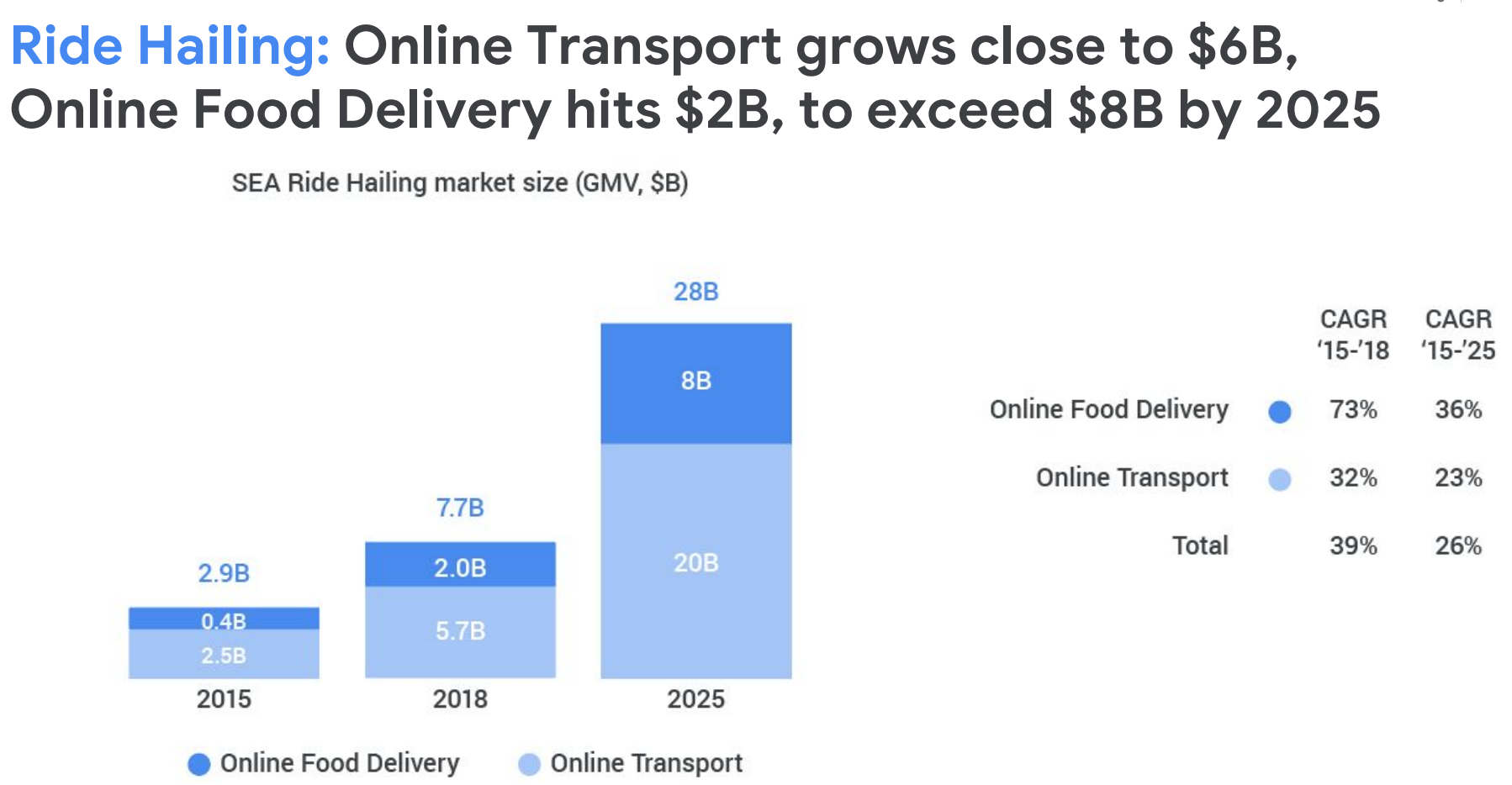 Esto es ciertamente solo el comienzo. Un informe de Google-Temasek sobre el sudeste asiático publicado el año pasado pronostica que el mercado de entrega de alimentos de la región crecerá de un estimado de $ 2 millones el año pasado a $ 8 mil millones en 2025. Esa predicción cuádruple es más grande que la previsión de crecimiento para el viaje, aunque este último es más grande.