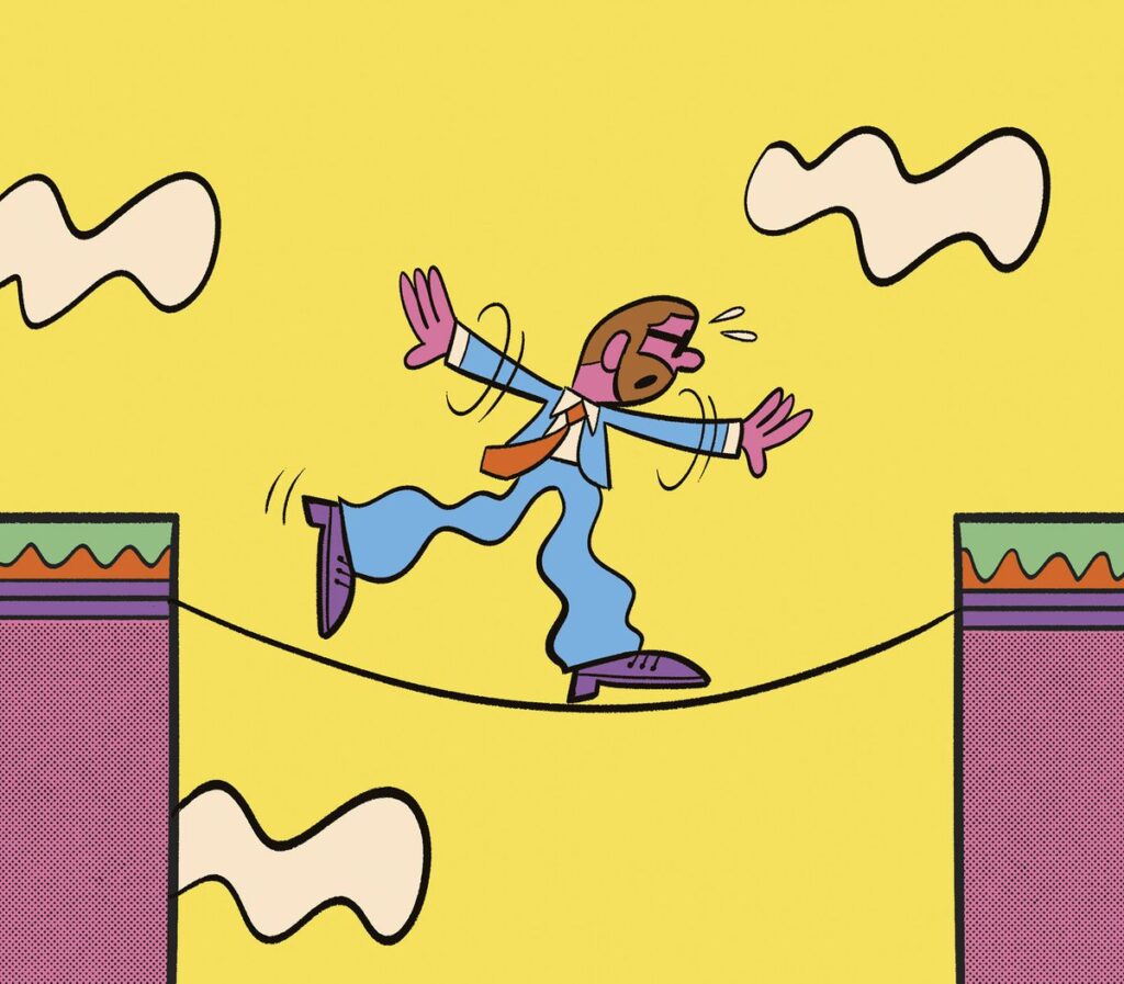 La noción de un instinto de muerte, postulada por Freud en 1920, aunque controvertida, podría ayudarnos a dar sentido a esto. Freud propone que, para preservar la experiencia de estar vivos, el impulso vital debe lidiar continuamente con su opuesto, y atribuyó a ese instinto una característica esencial: la compulsión por repetir. Con el fin de tomar posesión de nuestra propia mortalidad, el instinto de muerte nos induce a simularla en bucles, a perseguir situaciones de riesgo, situándonos en el límite. De ahí también provienen las conductas complacientes, mecánicas en las que participamos para protegernos. El instinto de muerte, por así decir, hace que todo se detenga, nos permite llegar a un lugar de quietud —y experimentar la sensación de estar vivos—. El equilibrista corre el riesgo de caerse, sobre todo cuando intenta permanecer en su lugar, casi sin mover un músculo. El riesgo de estar en suspenso es un acto acrobático que admiramos, es un compromiso de no resolución de un acto, una invitación a arriesgar más allá, a albergar contradicciones insoportables y volverlas vivas. “En tanto acto, el riesgo deja que el azar se apodere. Lo querríamos voluntario, pero se genera en la oscuridad, en lo inverificable, lo incierto”, escribió Dufourmantelle, que, en 2017, falleció cuando intentaba salvar a dos niños que luchaban por nadar hacia la costa de la playa de Pampelonne, cerca de Saint-Tropez. Ella murió ahogada. Los dos niños sobrevivieron.