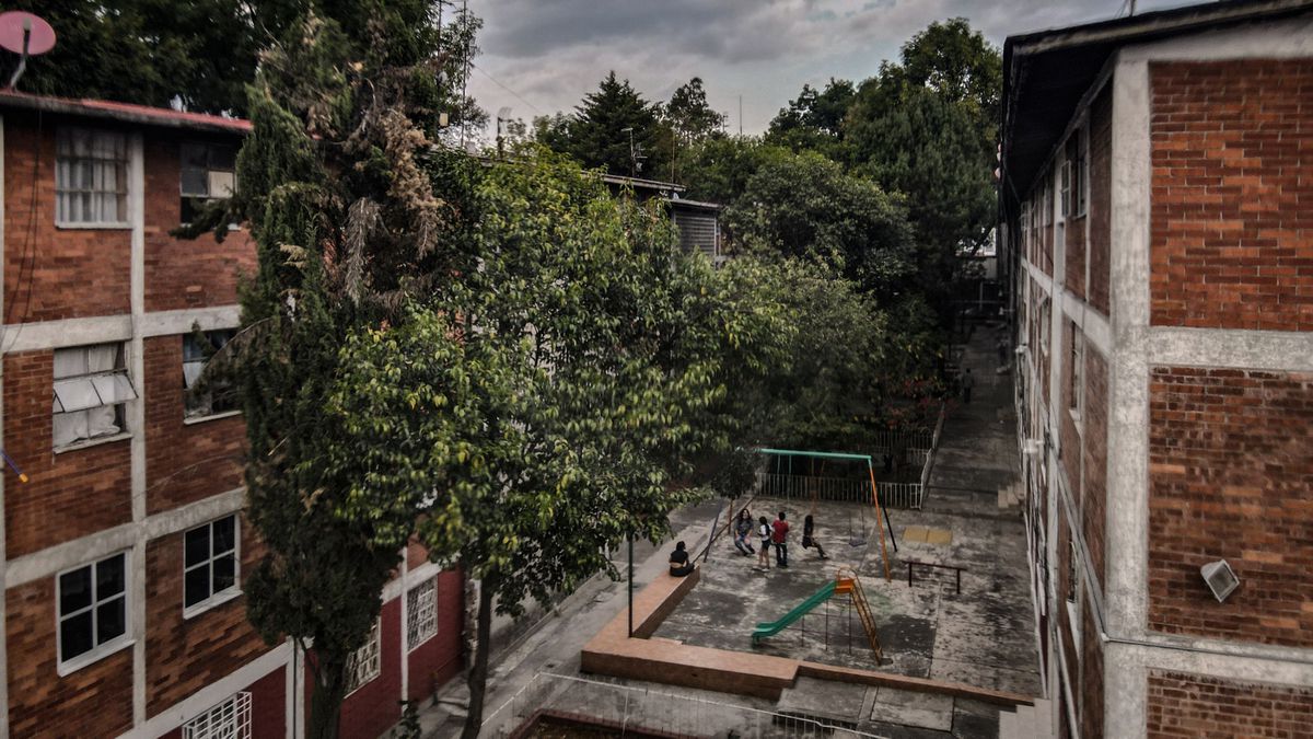 “Aunque modesto en su tamaño y alcance, este proyecto le ofreció a Barragán la oportunidad de aplicar sus principios en diseño paisajístico a un contexto espacial y social que difería sustancialmente de sus trabajos previos”, dice la página de la fundación sobre el jardín descubierto. En los planos originales, el jardín de cemento en el centro de los cinco edificios residenciales toma la forma de una L, un espacio dividido en cuadros por largas banquetas de cemento pintadas de rojo y espacios para que jueguen los niños o para sembrar árboles (en la imaginación de Barragán, allí habría sauces llorones o fresnos. Pérez, el administrador, tiene árboles de durazno o naranjas).