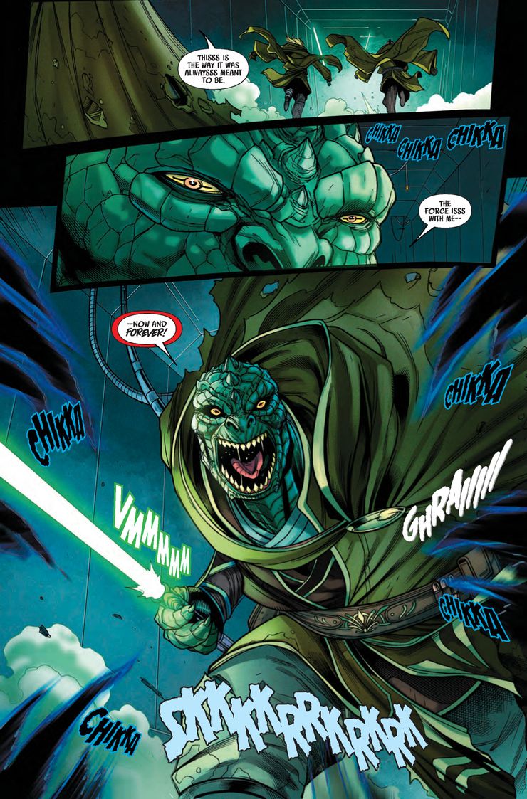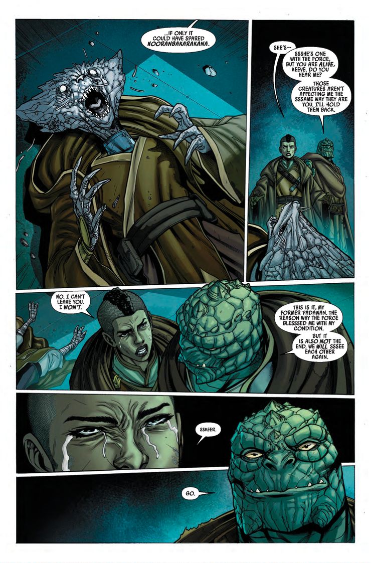 En un nuevo adelanto del último número de Star Wars: La Alta República, uno de los Jedi más trágicos de la era, acaba de convertir su nueva debilidad en la Fuerza en una fortaleza importante para salvar a sus camaradas. Perteneciente a la especie reptiliana trandoshana, el Maestro Jedi Sskeer ha estado luchando contra una enfermedad que ha afectado su conexión con la Fuerza. Sin embargo, puede terminar siendo la clave para garantizar la supervivencia de su padawan y sus compañeros Jedi en este nuevo número.