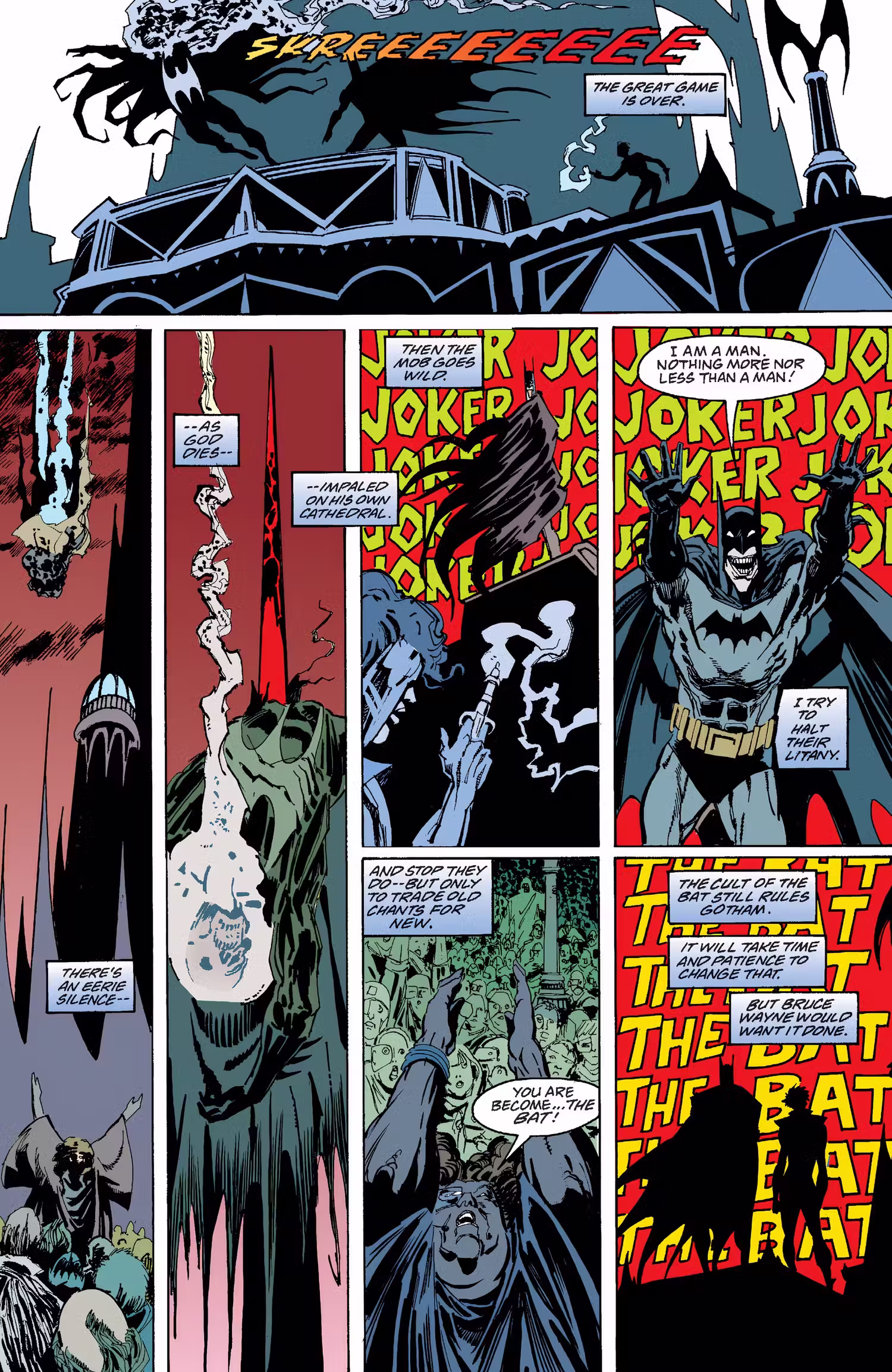 Lo que diferencia a esta historia única de otras que presentan al Joker convirtiéndose en un héroe es el hecho de que en realidad se convierte en Batman, con símbolo de murciélago y todo, en lugar de convertirse en una versión heroica igualmente bien intencionada de su personaje de payaso. Redimiendo efectivamente a este Joker al permitirle completar su misión rebelde original de derrotar a Bruce para siempre.tanto Joe como Marya, ahora actuando como el Robin del Batman de Joe, pueden erradicar su influencia en toda la ciudad, matando la idea de su culto de murciélagos y al mismo tiempo asegurando que la verdadera leyenda y el legado de Batman sigan vivos.